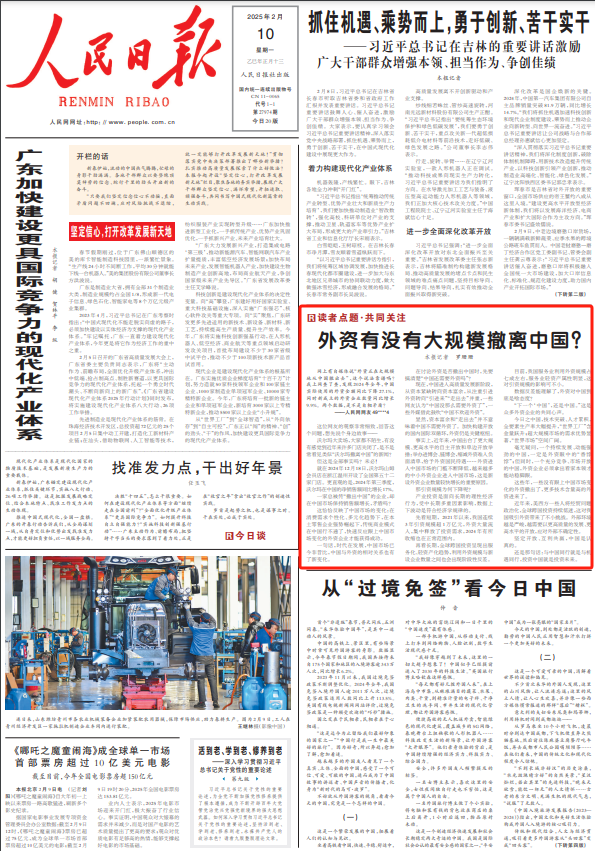讀者點題·共同關注|外資撤離中國?人民網網友點題,人民日報頭版回了