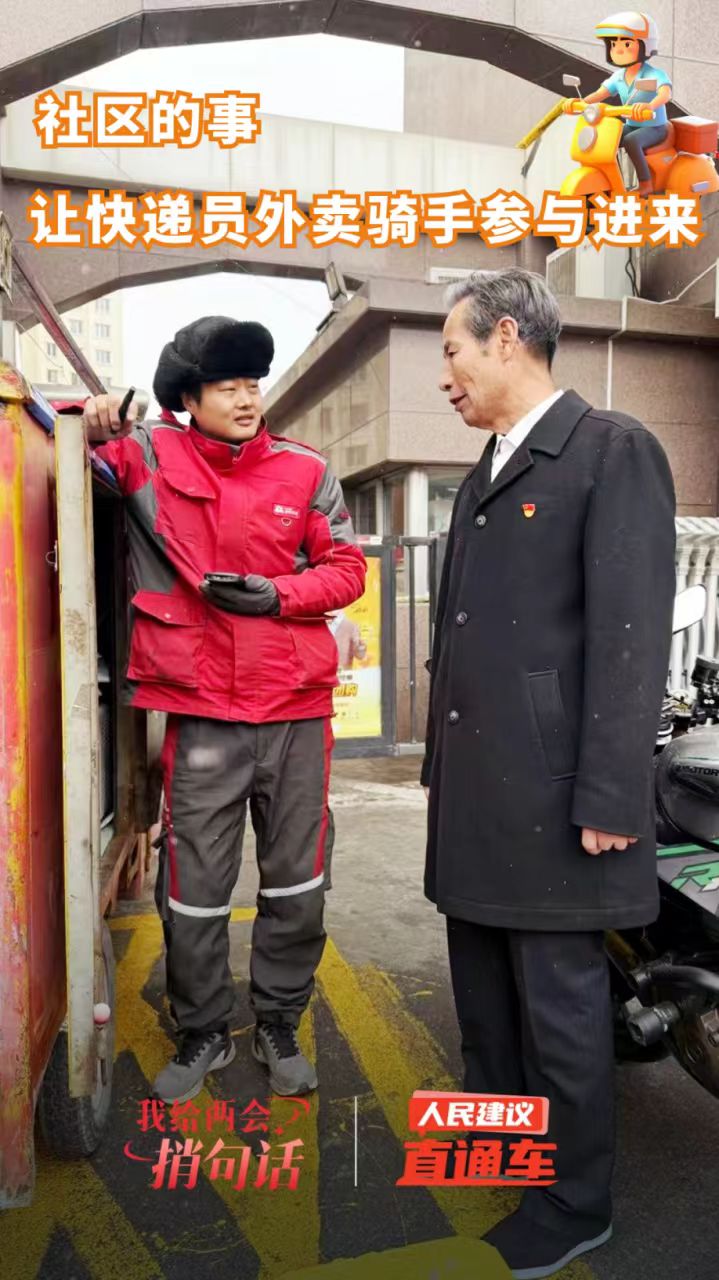現實生活中,外賣騎手、快遞小哥面臨著進門難、停車難等諸多困擾。青海省西寧市城東區退休老黨員董朵富通過人民網《人民建議》,給2025年全國兩會“捎話”:“建議廣泛建設騎手友好型社區,動員快遞小哥、外賣騎手等各類新社會力量參與到基層治理中來?!?/p>