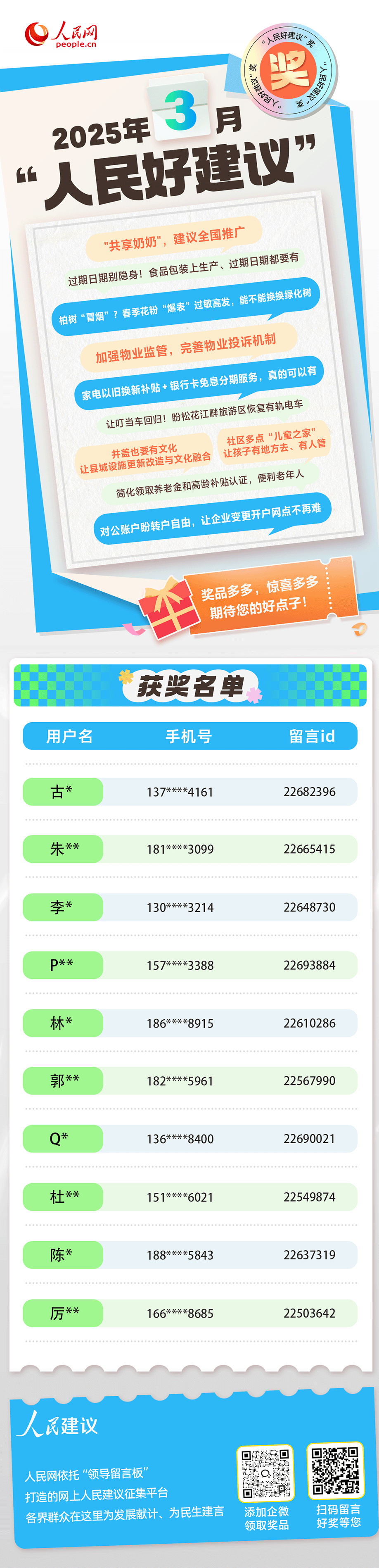 您的留言上榜了嗎?3月“人民好建議”公布,快來領獎