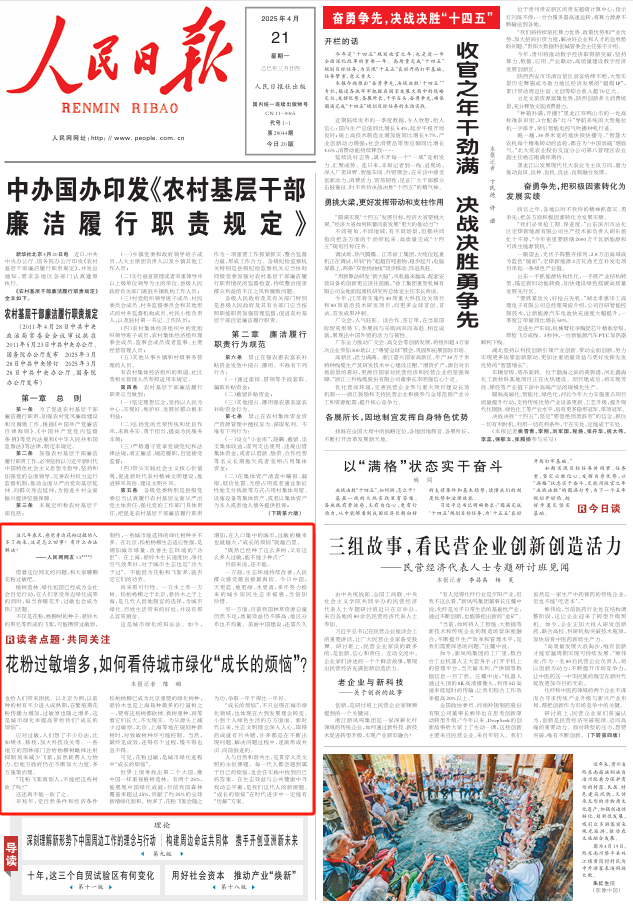 《 人民日報 》( 2025年04月21日 01 版)