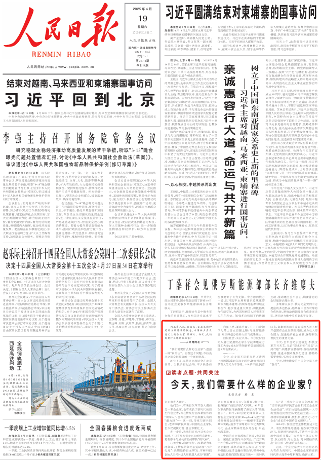 《 人民日報 》( 2025年04月19日 01 版)