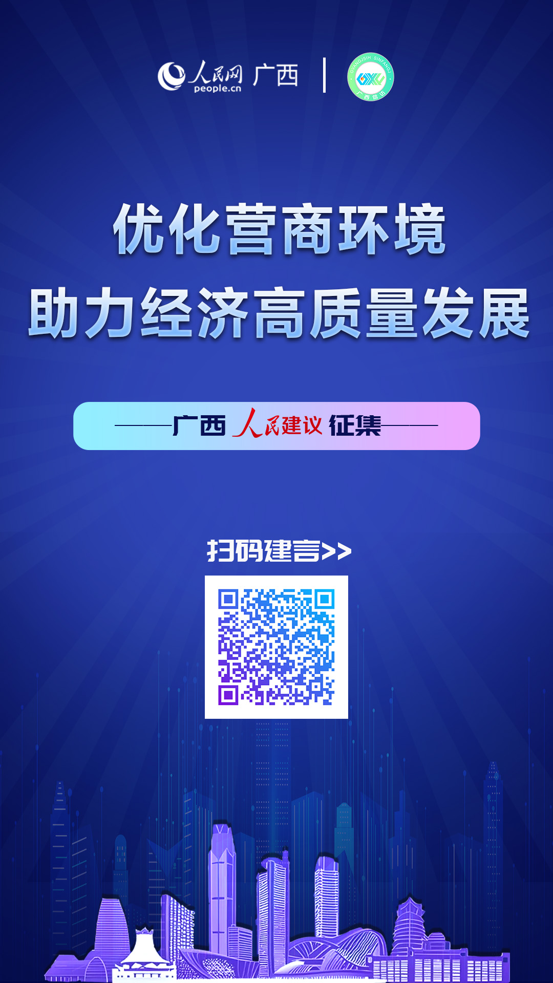 人民網北京4月25日電 (彭姝婷、實習生李依夢)為進一步優化營商環境,激發經營主體活力,廣西壯族自治區信訪局聯合人民網廣西頻道,通過人民網“人民建議”開展“優化營商環境 助力經濟高質量發展”人民建議征集活動(點擊參與),誠邀廣大企業負責人、個體工商戶及關心廣西發展的社會各界人士踴躍建言。